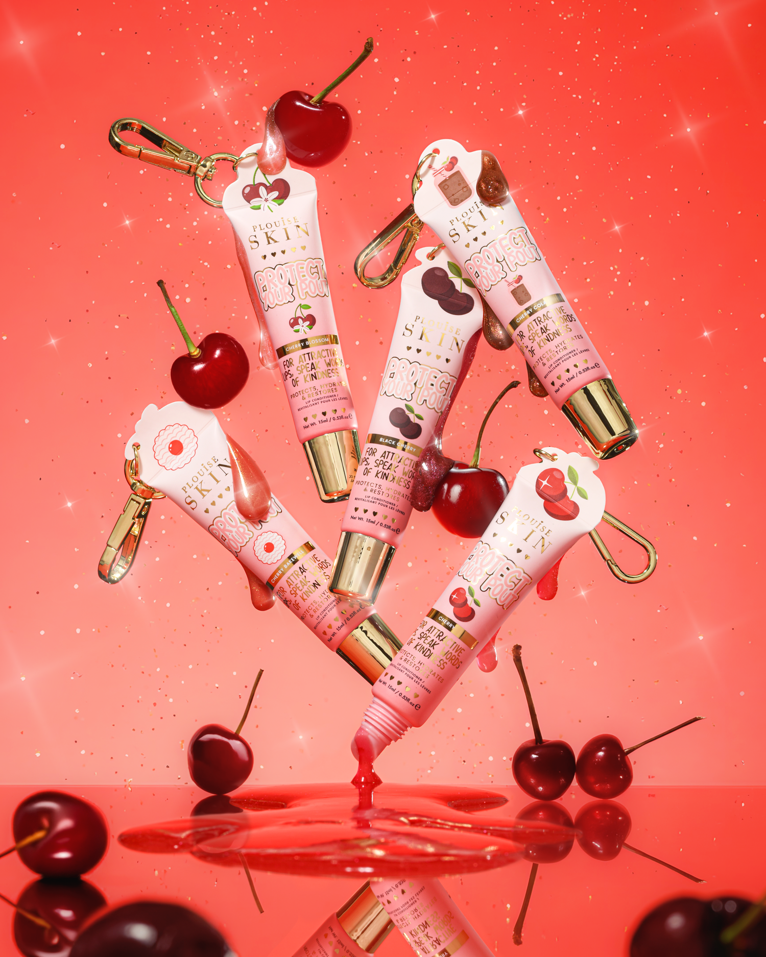 Od słodkiego Cherry Blossom i klasycznej Cherry, po głębszą, bardziej nastrojową Black Cherry i inspirowaną deserem Cherry Bakewell, każda warstwa jest wypełniona smakami, które będziesz chciał wielokrotnie przesuwać. To pielęgnacja ust, ale spraw, by była pobłażliwa.